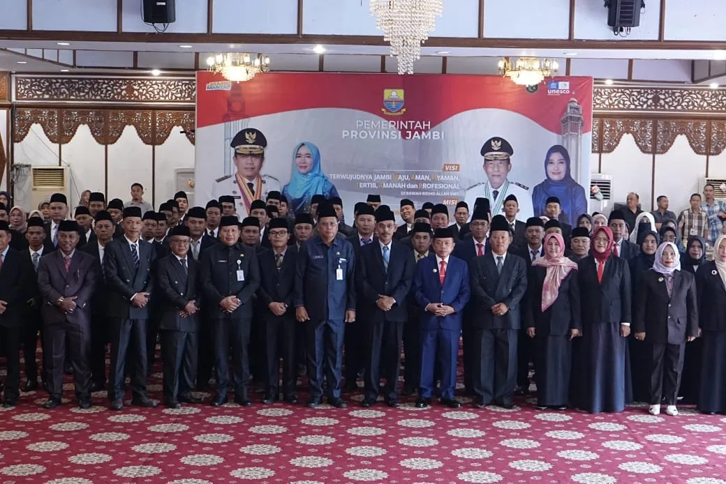 Jambi – Gubernur Jambi Dr. H. Al Haris, S.Sos, MH resmi melantik dan mengambil sumpah janji 101 pejabat yaitu 18 Pejabat Fungsional dan 83 Kepala Sekolah di lingkup Pemerintah Provinsi Jambi, bertempat di Auditorium Rumah Dinas Gubernur, Jum’at (24/01/2024) pagi.