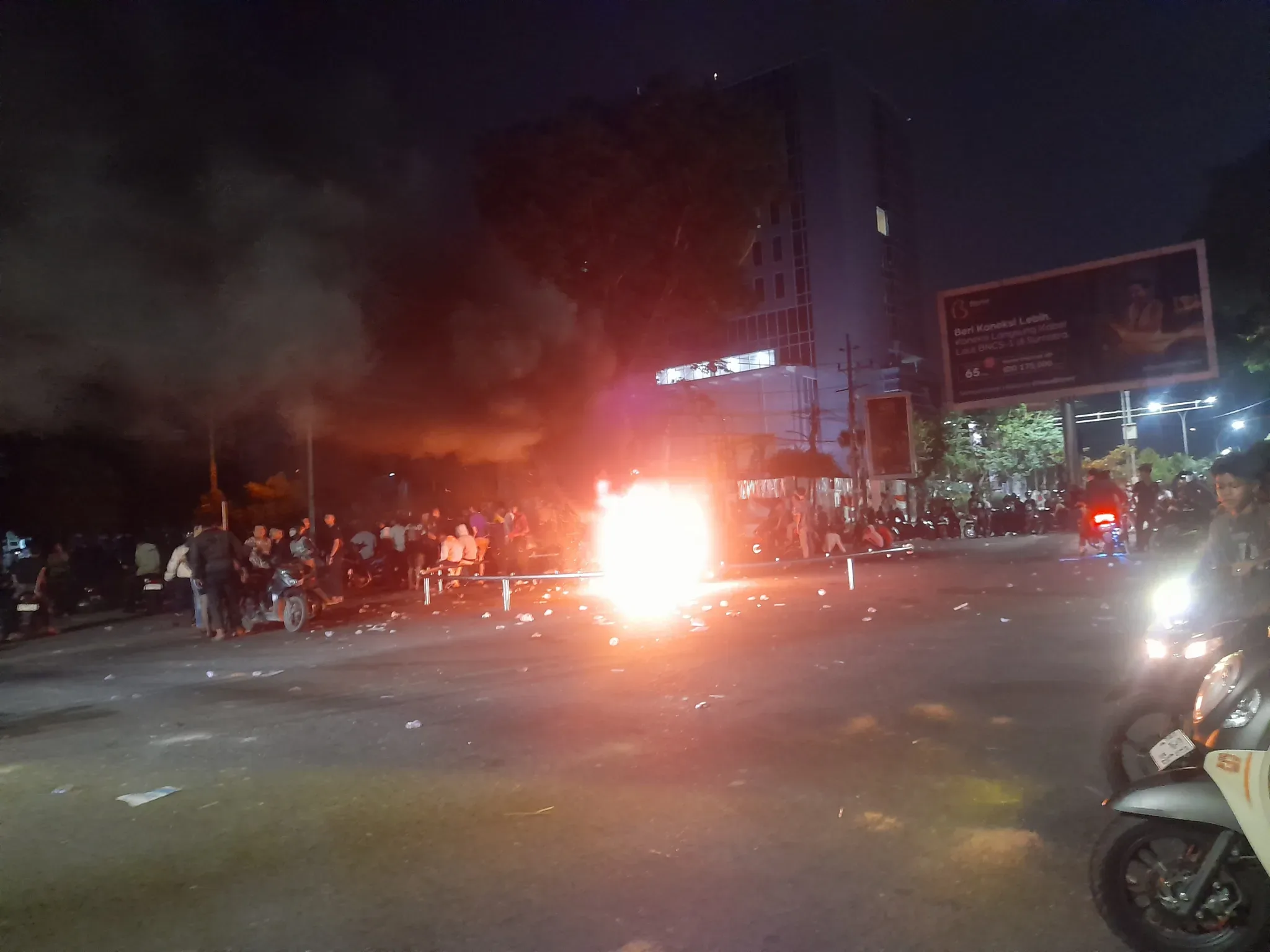 “Setelah itu, kami tiga orang datang mengambil motor di Kejati dan kembali ditanya ‘intel ya?’. Kami jawab bukan, kami dari media. Tapi setelah ambil motor, situasi memanas dan satu mobil milik kawan wartawan dibakar. Dua mobil milik Kejaksaan dan satu motor polisi juga dibakar,” lanjutnya.