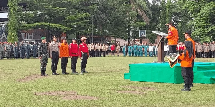 Jambi – Gubernur Jambi, Al Haris memimpin Apel Siaga Darurat Penanganan Bencana Kekeringan, Kebakaran Hutan dan Lahan (Karhutla) Provinsi Jambi Tahun 2023, di lapangan Korem 042 Garuda Putih Jambi, Senin, 8 Mei 2023.