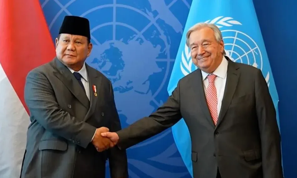 Jakarta – Presiden Republik Indonesia Prabowo Subianto bertemu Sekretaris Jenderal Perserikatan Bangsa-Bangsa (PBB) Antonio Guterres di New York, Amerika Serikat, Senin (22/9).