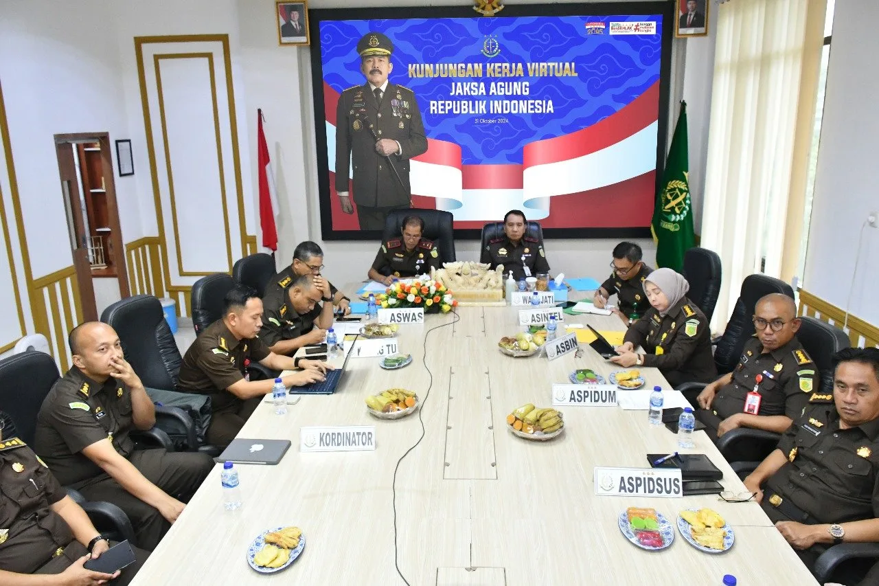 Jambi – Kejaksaan Tinggi Jambi mengikuti kegiatan Kunjungan Kerja Virtual Jaksa Agung Republik Indonesia, ST Burhanuddin yang bertempat di Ruang Rapat Lantai II dan Aula Jaksa Agung R. Soeprapto Lantai IV kantor Kejati Jambi pada Kamis (31/10/2024).