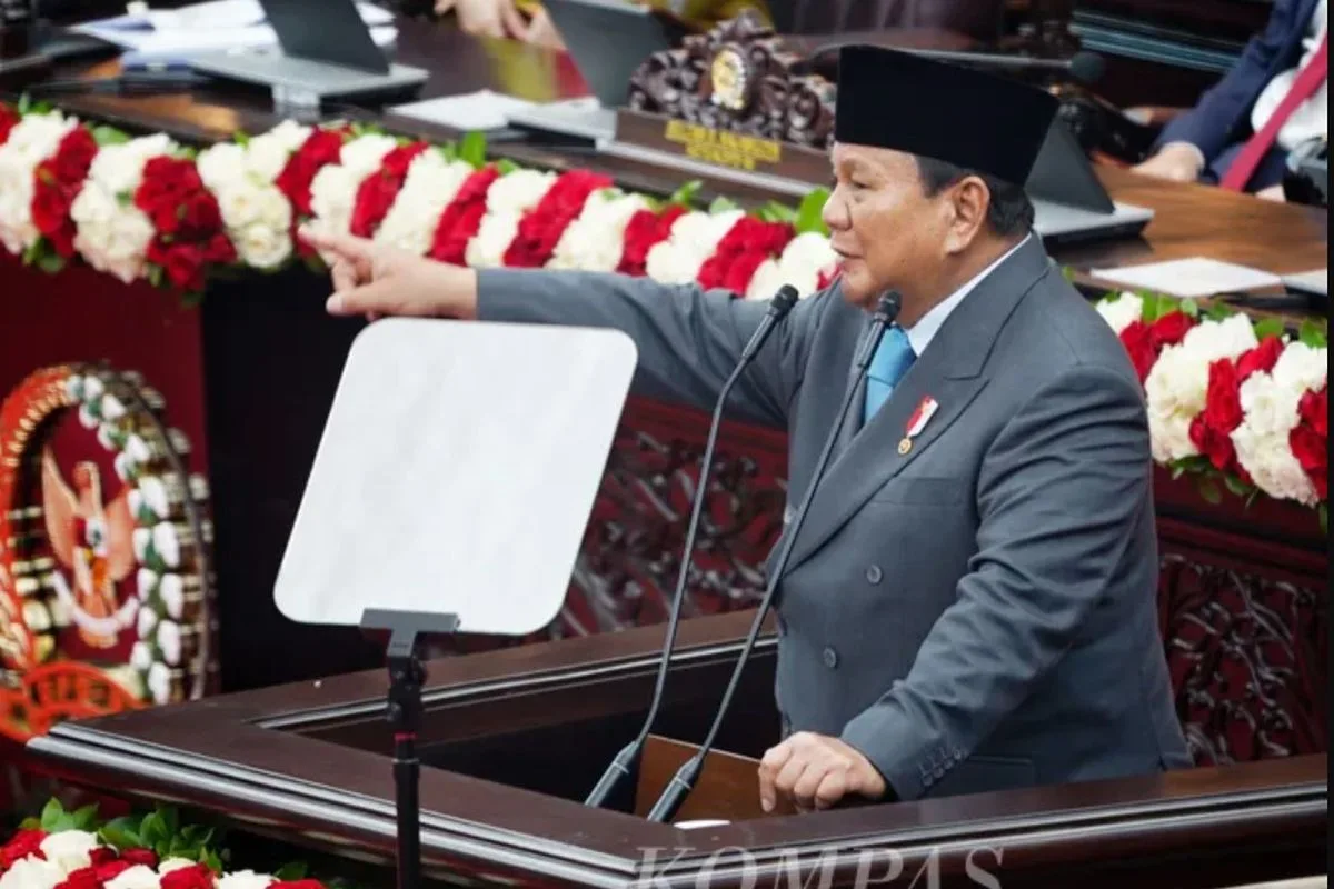 JAKARTA – Presiden RI Prabowo Subianto melontarkan kelakar saat menghadiri Sidang Tahunan MPR dan Sidang Bersama MPR, DPR, serta DPD RI di Gedung Nusantara, Kompleks Parlemen, Jakarta, Jumat (15/8/2025).