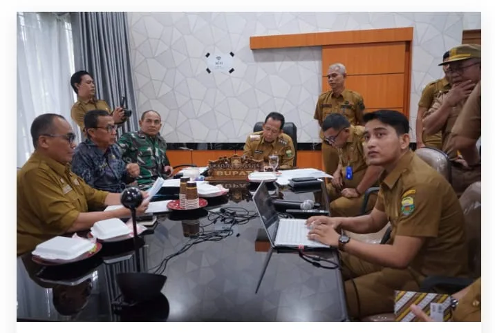 SENGETI – Bupati Kabupaten Muaro Jambi Bambang Bayu Suseno SP. MM. M.S.i menghadiri kegiatan Zoom meeting Verifikasi Lapangan Kabupaten Layak Anak (KLA), Senin, (21/04/2025).