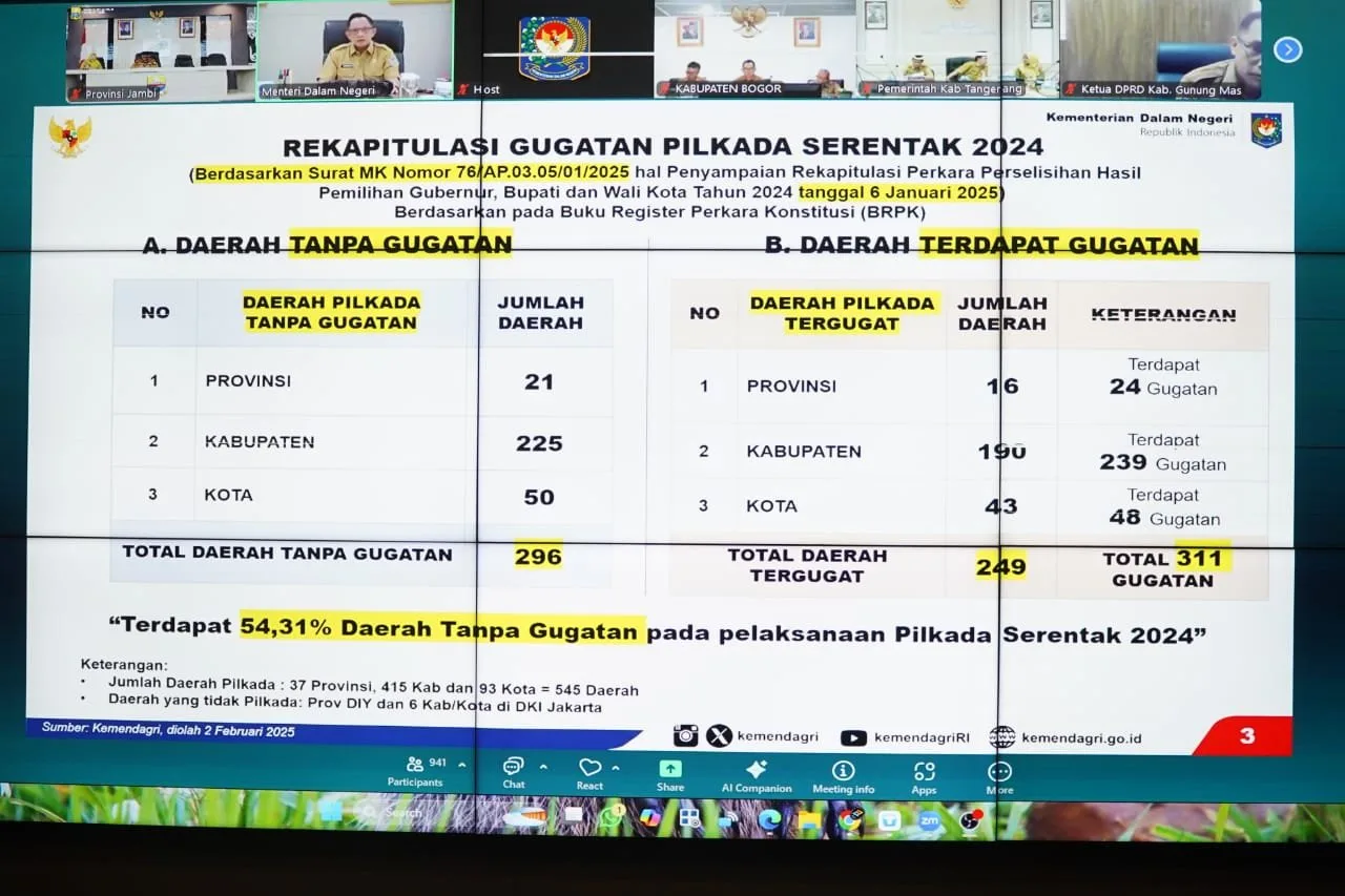 Dalam rapat tersebut, Mendagri Tito Karnavian yang langsung memimpin rapat mengungkapkan bahwa berdasarkan instruksi dari Presiden Prabowo Subianto memerintahkan agar pelantikan kepala daerah dipercepat, untuk memberi kepastian hukum dan kepala daerah tersebut bisa langsung bekerja. “Pelantikan kepala daerah yang tak bersengketa ini akan digabung dengan kepala daerah hasil putusan sela atau dismissal di MK pada tanggal 20 Februari 2025,” ungkap Mendagri.
