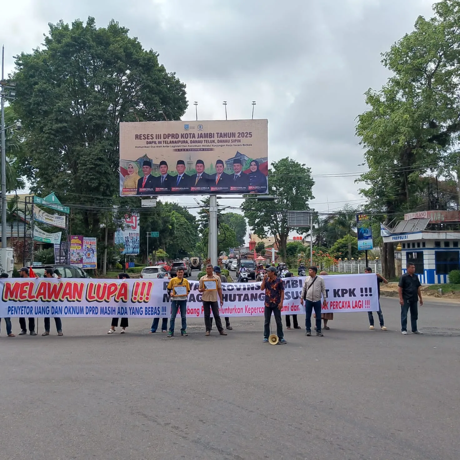 Dalam aksi tersebut, massa mendesak Komisi Pemberantasan Korupsi (KPK) menuntaskan penyelidikan kasus suap ketok palu RAPBD Jambi 2017–2018. Mereka menyoroti sejumlah pihak yang disebut dalam dakwaan mantan Gubernur Jambi, Zumi Zola, namun hingga kini belum diproses hukum.