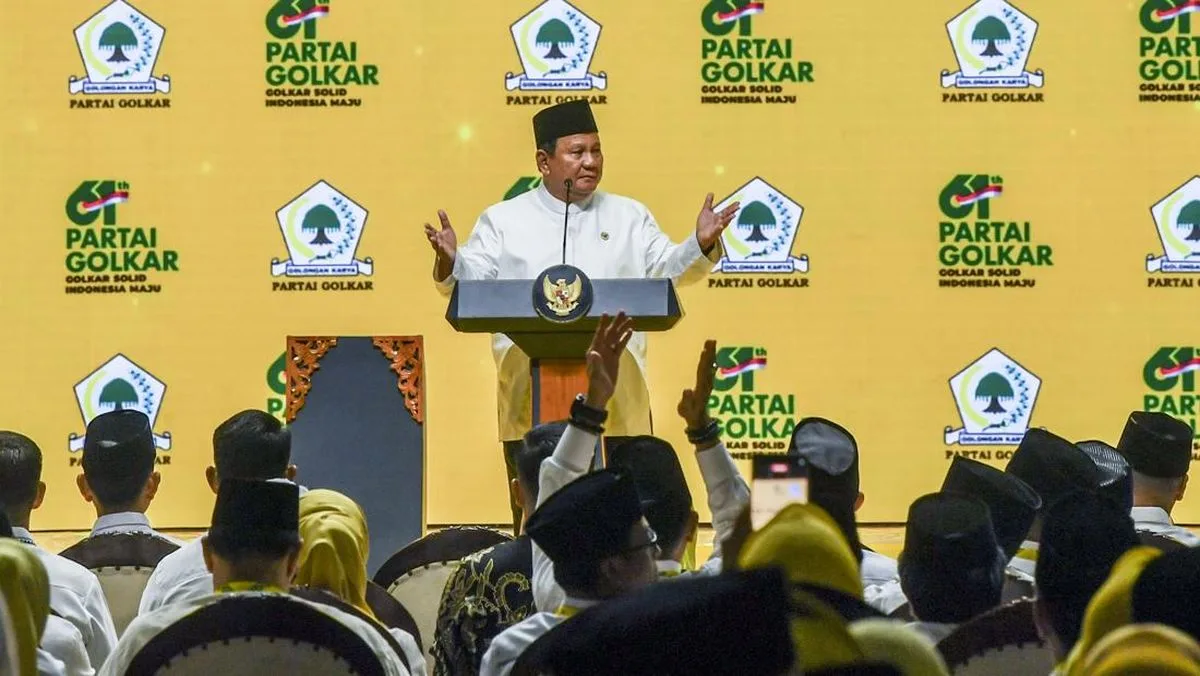 Jakarta — Presiden Prabowo Subianto mengkritik demokrasi dan Hak Asasi Manusia (HAM) yang dipraktikkan di negara-negara Barat dalam pidatonya pada acara puncak perayaan HUT Partai Golongan Karya (Golkar) ke-61 di Istora Senayan, Jakarta, Jumat (5/12).