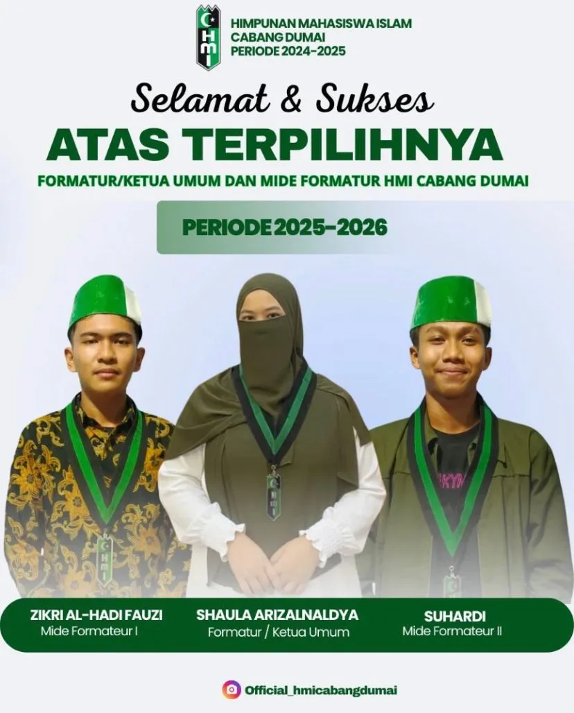 Sementara itu, Formatur/Ketua Umum terpilih HMI Cabang Dumai periode 2025–2026, Shaula Arizalnaldya, menyatakan komitmennya untuk melanjutkan program-program kaderisasi dan penguatan organisasi.