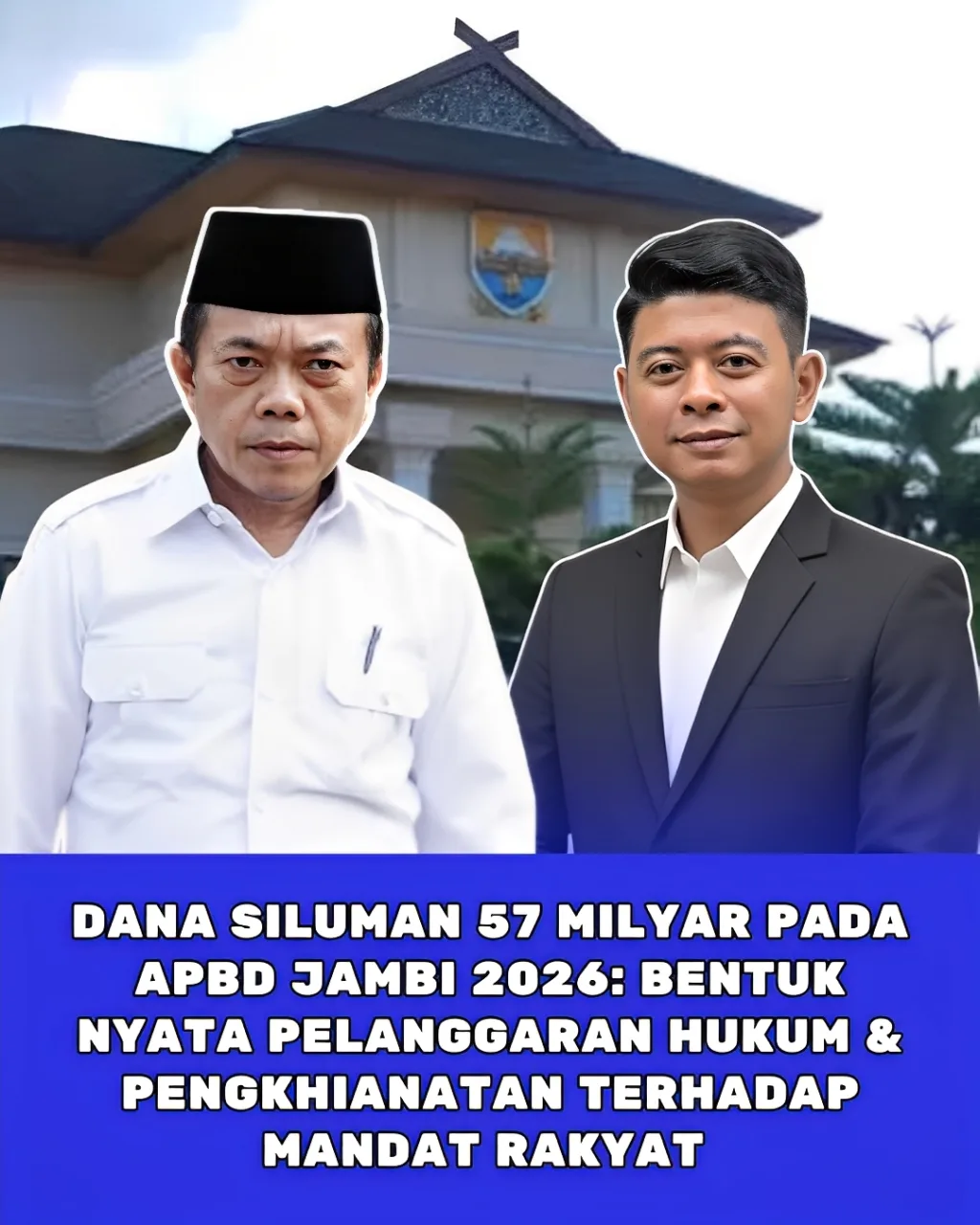 Jambi – Penambahan anggaran Sebesar 57 Milyar secara sepihak dalam APBD Provinsi Jambi Tahun Anggaran 2026 tanpa melalui pembahasan dan persetujuan DPRD patut diduga sebagai dana siluman. Anggaran yang muncul di luar mekanisme resmi, tidak transparan, dan tidak diketahui publik bukan hanya persoalan teknis administrasi, melainkan pelanggaran hukum serius yang mencederai prinsip demokrasi dan tata kelola pemerintahan yang bersih.
