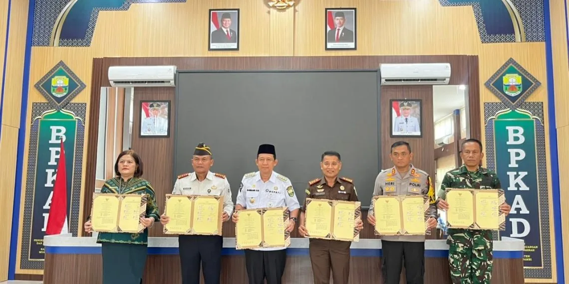 Kegiatan yang berlangsung khidmat pada pukul 11.00 WIB di Ruang Rapat BPKAD Muaro Jambi, Komplek Perkantoran Bukit Cinto Kenang ini, menjadi tonggak penting dalam sinergi penegakan hukum di daerah tersebut.