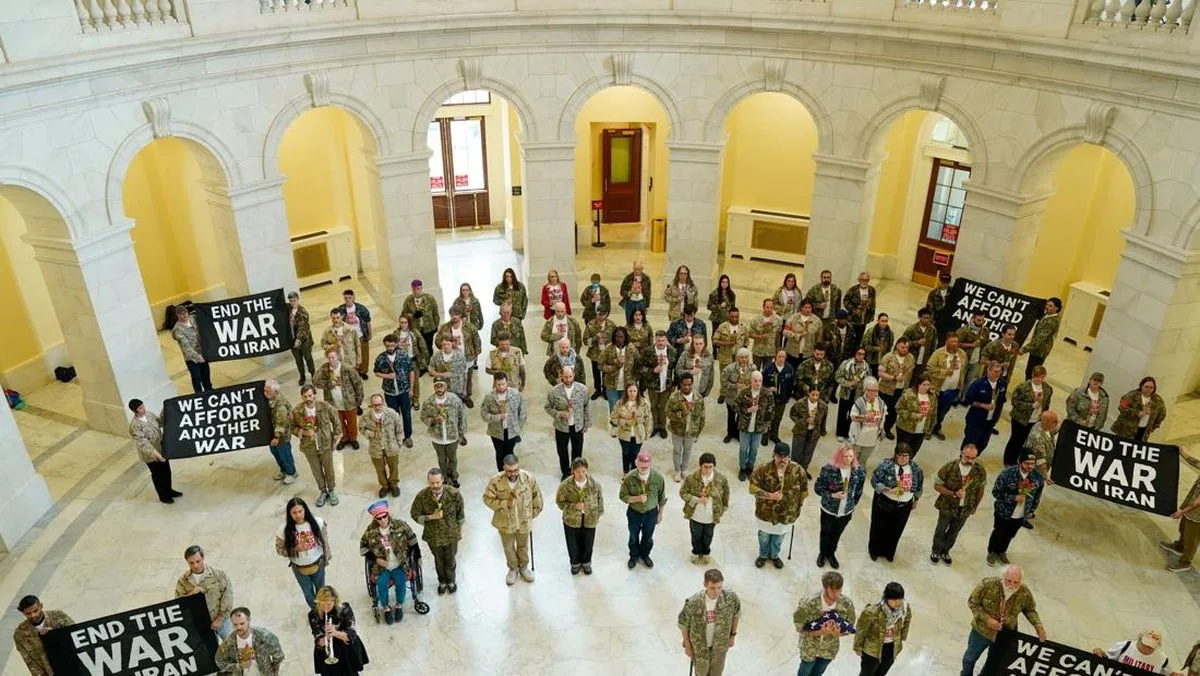 Aksi tersebut berlangsung di rotunda Gedung Kantor Cannon House, di mana sekitar 60 veteran dan anggota keluarga berkumpul. Sebagian dari mereka mengenakan seragam militer sambil membawa spanduk bertuliskan “Akhiri Perang di Iran” dan “Kita Tidak Mampu Membiayai Perang Lain”.