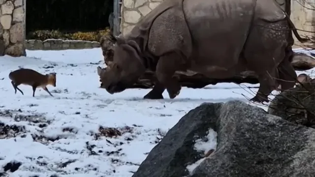 Kecil tapi Berani, Rusa Muntjac ‘Tantang’ Badak Bercula Satu di Kebun Binatang Polandia